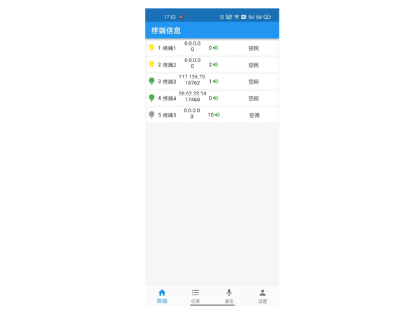 7、查看终端的运行状态、音量、任务等信息;